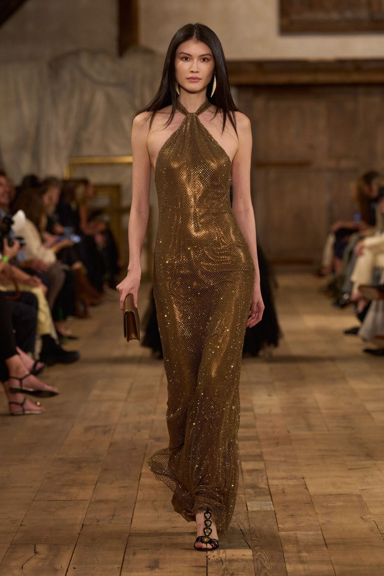 时隔四年,Ralph Lauren于2024年春夏系列再次亮相纽约时装周的舞台。品牌选择在布鲁克林的海军造船厂仓库举行大秀,将设计师钟情的西部牛仔乡村氛围融入其中。品牌大使Krystal、Jennifer Lopez、Julianne Moore、Diane Keaton、Amanda Seyfried、Sofia Richie等名人亲临前排。更为惊喜的是,时装界传奇超模Christy Turlington也在大秀的最后露面,身着一袭斜肩不对称的金色礼服,完美诠释了Ralph Lauren品牌的华丽与典雅。Ralph Lauren的2024春夏系列呈现了一种崭新的浪漫主义风格,将率性和雅致完美融合,彰显了自由创造个性风格的精神。在83岁的Ralph Lauren先生的领导下,品牌展现了对时尚的不懈追求和创新,再次用他独特的美学语言为时尚界呈现了一场视觉盛宴。