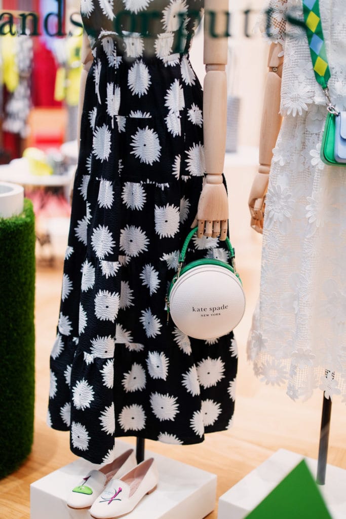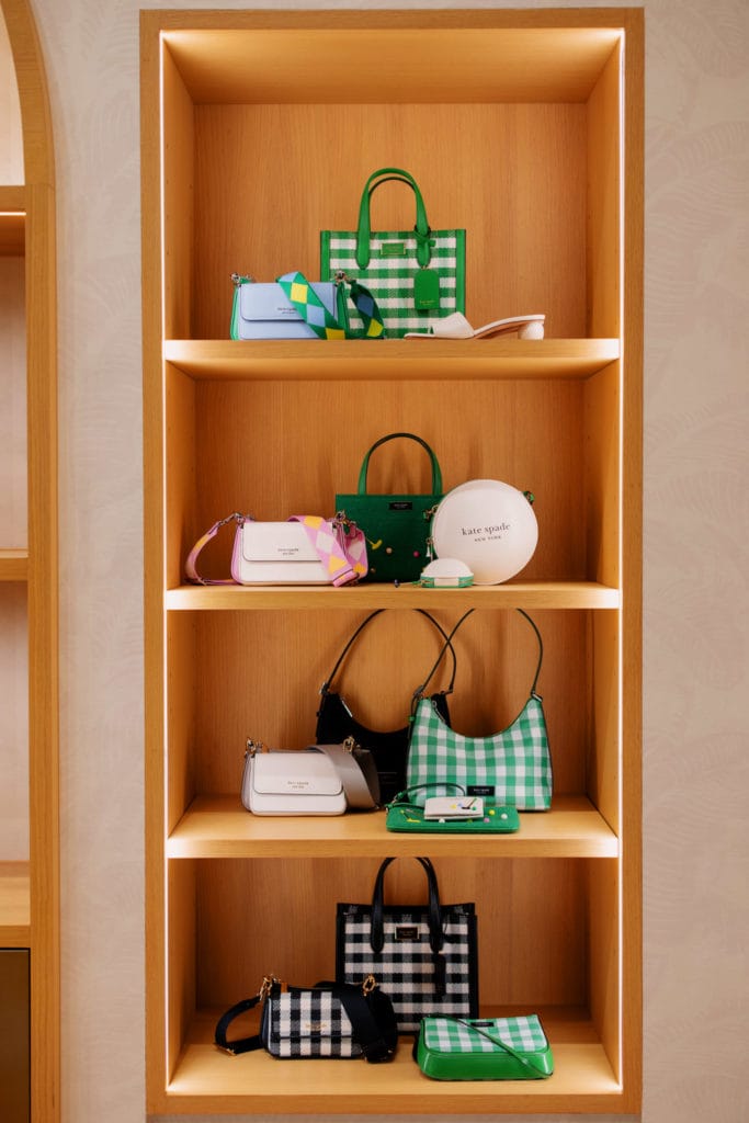 概念店以发售2024春季系列包括包袋、鞋履、首饰等配饰为主,精选成衣的展示也欢愉洋溢,令人心动不已。在Kate Spade New York独特的视角下,每一件陈列单品都呈现出高级而充满活力的氛围。